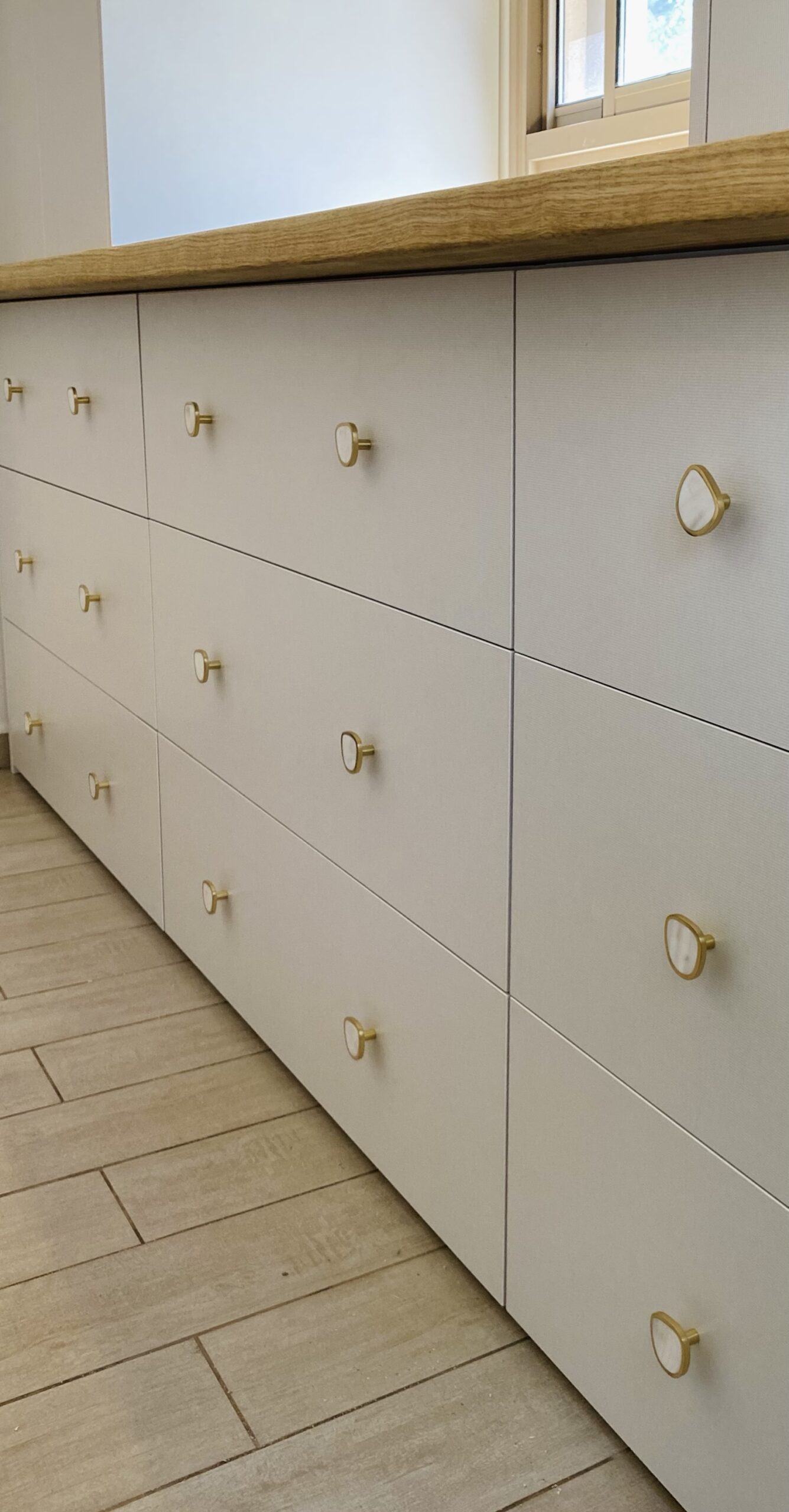 שילוב של עץ אגוז אפריקאי עם מלמין פשתן יצרו מראה רך ועדין של ארון ביגוד אלגנטי ורחב ידיים.